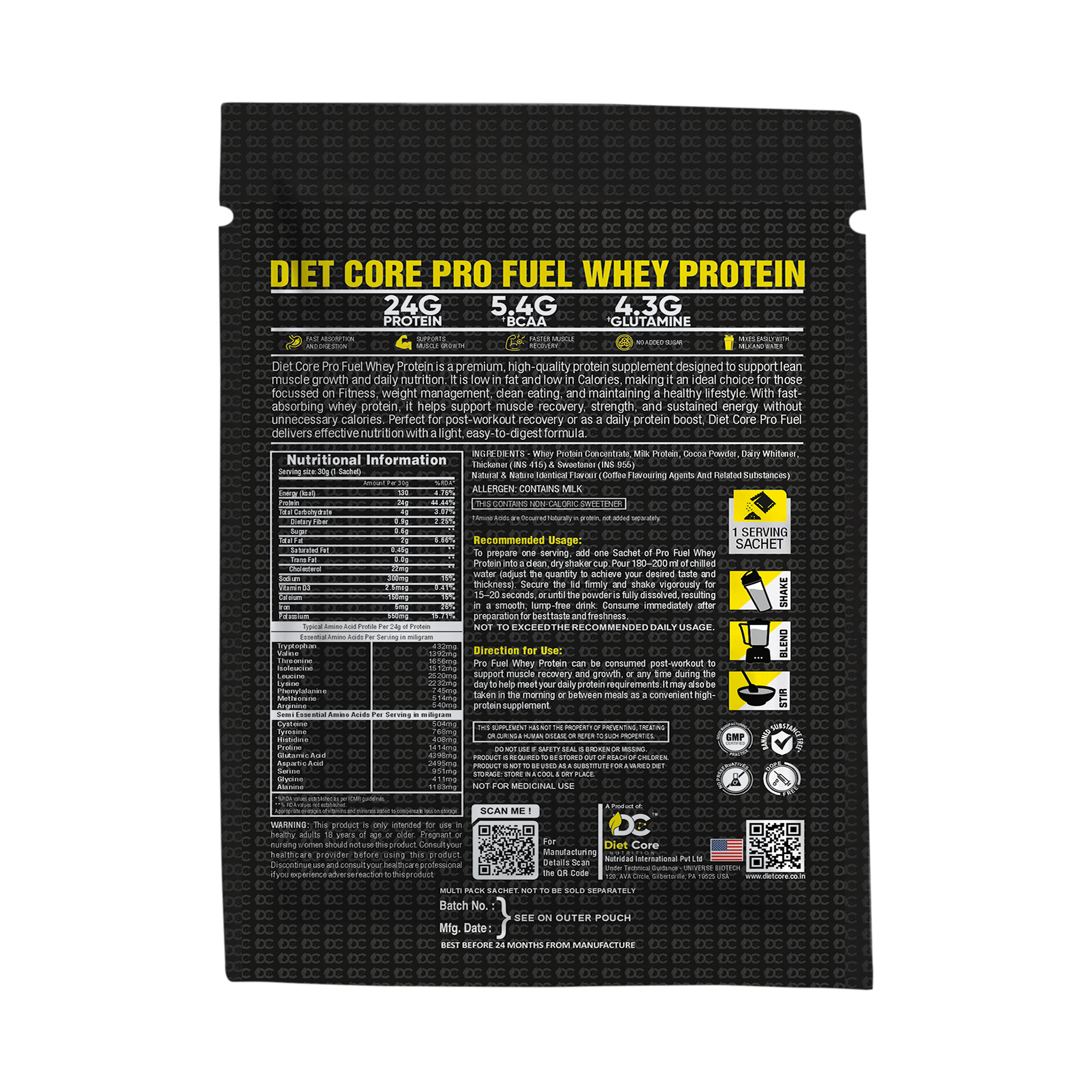 Kickstart your day or power through your workouts with the bold, energizing taste of coffee. Diet Core One Serving Sachet in Coffee flavor combines rich aroma with high-quality protein—perfect for those who love their caffeine with a fitness edge.